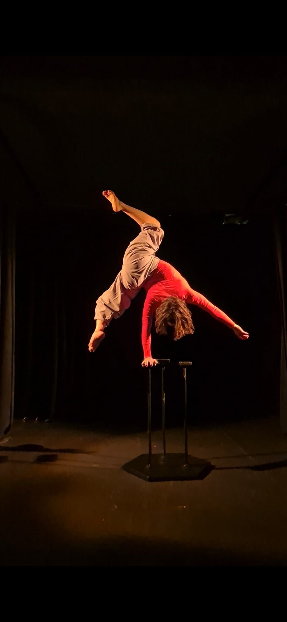 Phoenix Shadows suit un corps à la recherche d’un sol qui ne le soutient plus ‍: il existe dans la lueur résiduelle de l’effondrement. Les outils du cirque contemporain deviennent une carte de ces fractures. Le corps négocie la gravité tel un écosystème blessé ‍: peu fiable, altéré, instable ‍: traversé, emporté, déplacé malgré tout ‍: reflétant des êtres qui ne trouvent plus leur place, mais qui persistent néanmoins à exister. Trouver un nouvel équilibre nous rappelle que l’instabilité n’est pas une défaite. Phoenix Shadows naît de la (in)tension ‍: de la certitude que les ruines deviennent des refuges, que la transformation est possible, que l’on peut se réapproprier son foyer. Un souffle suspendu entre l’extinction et le devenir.